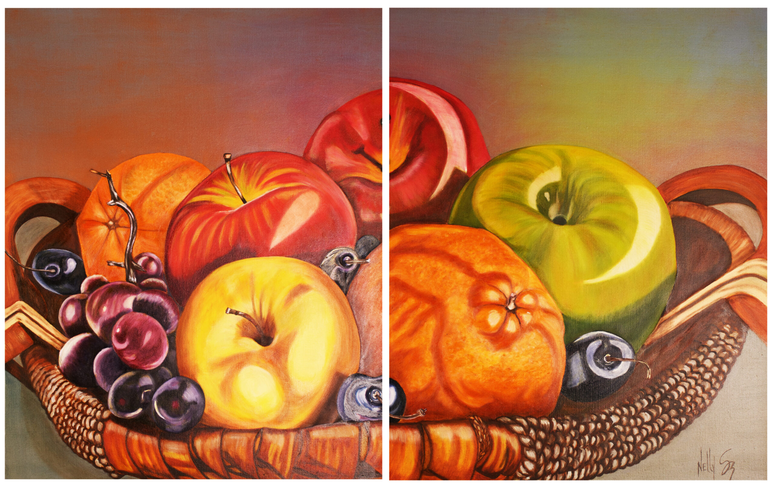 Still Life Tea for two 20×26 Butterfly on the leaf 35 cm x 45 cm Fruit Basket Diptych One Panel 76 cm x 61 cm Fall girl 30.5cm x 40.5cm